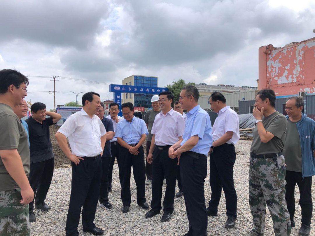 2020年7月13日,山东省水利厅厅长刘中会在寿光市委书记赵绪春的陪同下,到第二分天行体育网址_天行(中国)负责实施的小清河防洪综合治理工程羊桥泵站视察工程建设及防洪度汛情况,天行体育网址_天行(中国)董事长刁望利陪同参加。刘厅长对羊桥泵站水下主体工程完工表示祝贺,对奋战在施工一线的工作人员表示慰问。羊桥泵站是小清河全线开工时间最晚、施工难度最大的建筑物,山东水总能够克服诸多困难圆满完成工程建设任务,体现了国企担当。刘厅长赞扬了天行体育网址_天行(中国)施工组织合理、工序衔接紧密高效,通过不懈努力向业主单位、向省水利厅交上了完美答卷。他要求在做好剩余工程施工的同时要做好防洪度汛工作,确保在建工程在汛期不出问题,备齐备足防汛物资、机械、人员,做好防大汛、抗大洪的准备。