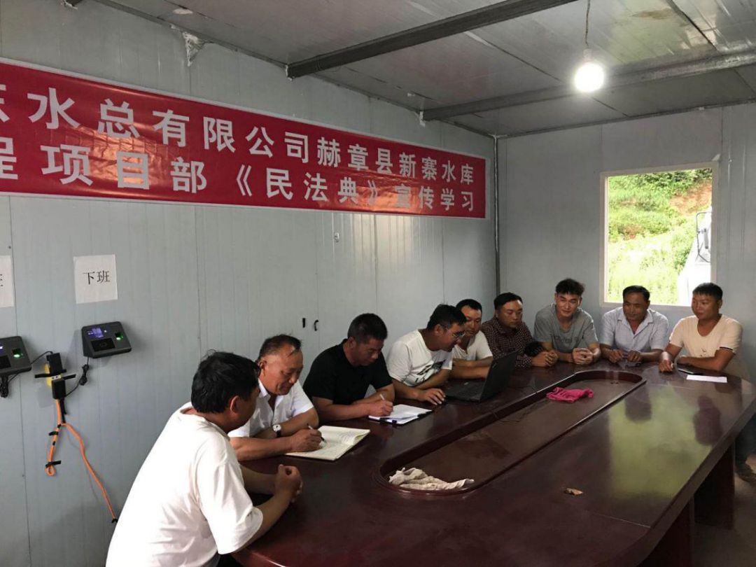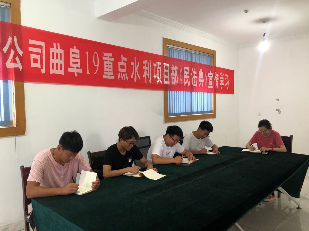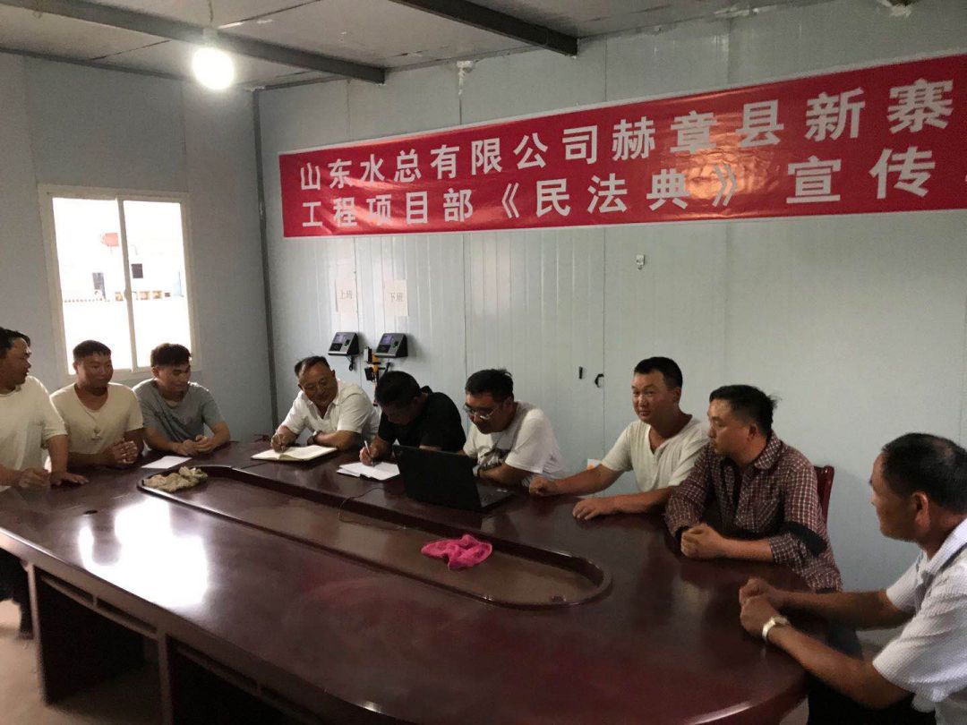 为响应总天行体育网址_天行(中国)法务与清收办公室组织的“《民法典》宣传月”活动, 7月23日晚上,泗水县黄阴集大闸除险加固工程项目经理部在工地会议室召开《民法典》学习宣贯会议、2020年7月25日,赫章县新寨水库工程项目部全体成员在会议室进行《民法典》宣传学习、曲阜2019年重点水利建设项目施工 一标段在2020年7月28日进行《民法典》学习、平塘县擦耳岩水库工程项目2020年7月29日进行《民法典》学习、宣贯情况汇报如下: