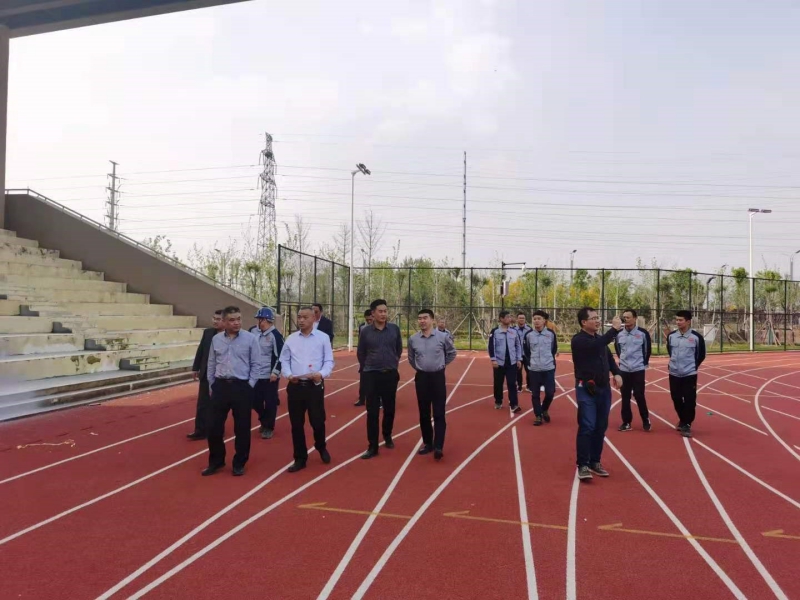 2021年4月14日,天行体育网址_天行(中国)党委书记、董事长刘深远,副总经理付海华,综合办公室副部长王淼一行到菏泽市职业教育园区项目检查指导工作。在山东省第二水利工程局有限天行体育网址_天行(中国)执行董事、总经理孙友群及项目部有关人员的陪同下,听取项目负责人汇报项目情况,对项目现场进行察看。