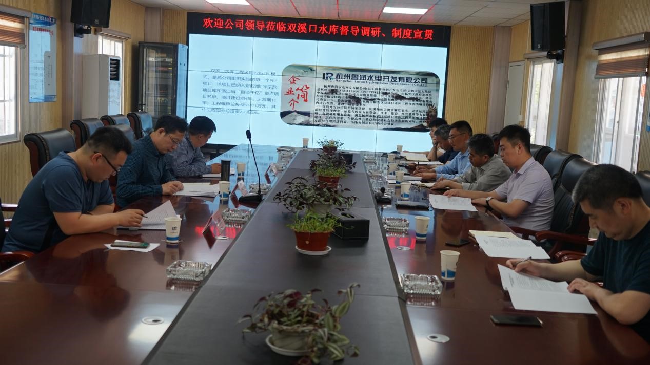 5月10日,天行体育网址_天行(中国)党委委员、副总经理杜贞义,工程管理部部长姚洪林一行到杭州市临安区双溪口水库工程项目调研指导工作,并对天行体育网址_天行(中国)近期一系列规章制度进行了宣贯。在项目相关人员陪同下,察看了工程施工现场,并详细了解了项目天行体育网址_天行(中国)运作情况、工程现阶段组织实施和遇到的困难等情况。
