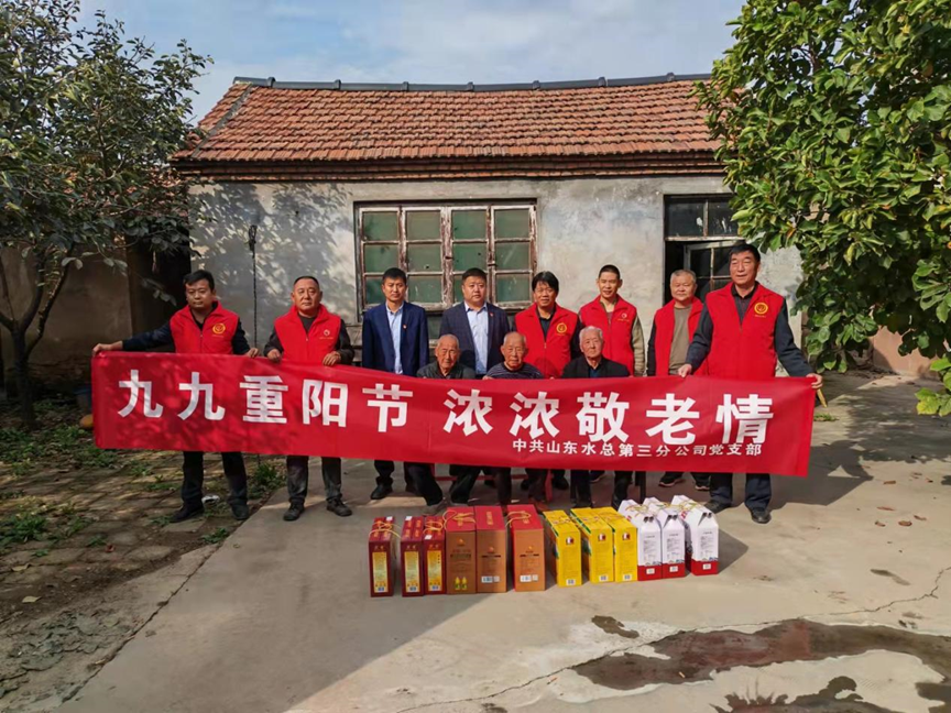 为弘扬中华民族尊老敬老的光荣传统,10月14日重阳节这天,第三分天行体育网址_天行(中国)副总经理杨绪辉、王庆捷一行前往天行体育网址_天行(中国)邹平市孝妇河提升改造工程施工4标项目部所在地,在高书记带领下看望东吕村的老党员们,为他们带去天行体育网址_天行(中国)党委的关怀和温暖,送去慰问品并致以节日的问候和祝福。杨绪辉同老党员们亲切拉家常,详细询问了老党员们的生活情况和身体状况,嘱咐他们一定要保重身体,对他们为国家、为社会做出的贡献表达了崇高敬意。