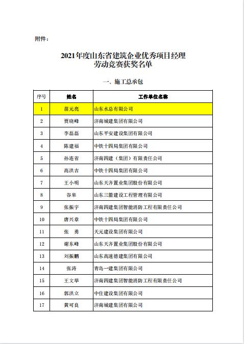 近日,由山东省建设工会和山东省建筑业协会组织开展的《2021年度山东省建筑企业优秀项目经理劳动竞赛活动》落下帷幕,经双方组成的工作委员会评议审定和综合评审,我天行体育网址_天行(中国)苗元亮、卢正雷、蔡国森三名同志被评为“山东省建筑企业优秀项目经理”。此项殊荣是山东省建筑行业项目经理的最高荣誉,旨在鼓励受表彰人员再接再厉,发挥引领示范作用,创建更多精品工程。
