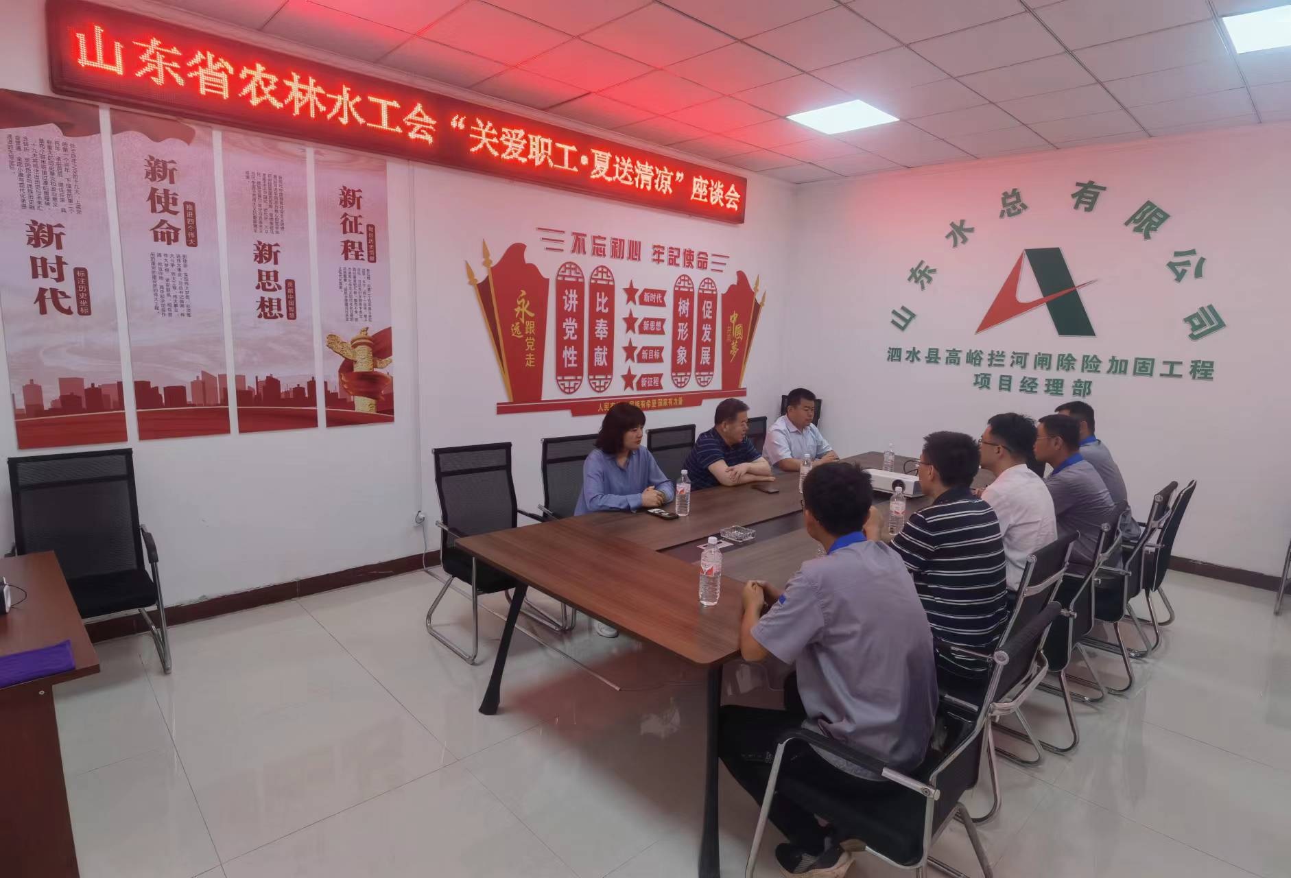 7月19日,山东省农林水工会主席张志刚一行到天行体育网址_天行(中国)泗水县高峪拦河闸除险加固工程开展“夏送清凉”慰问活动。天行体育网址_天行(中国)党委副书记、工会主席周少林,党委组织部部长孙凌,第七分天行体育网址_天行(中国)总经理韩栋,副总经理常征陪同参加慰问。