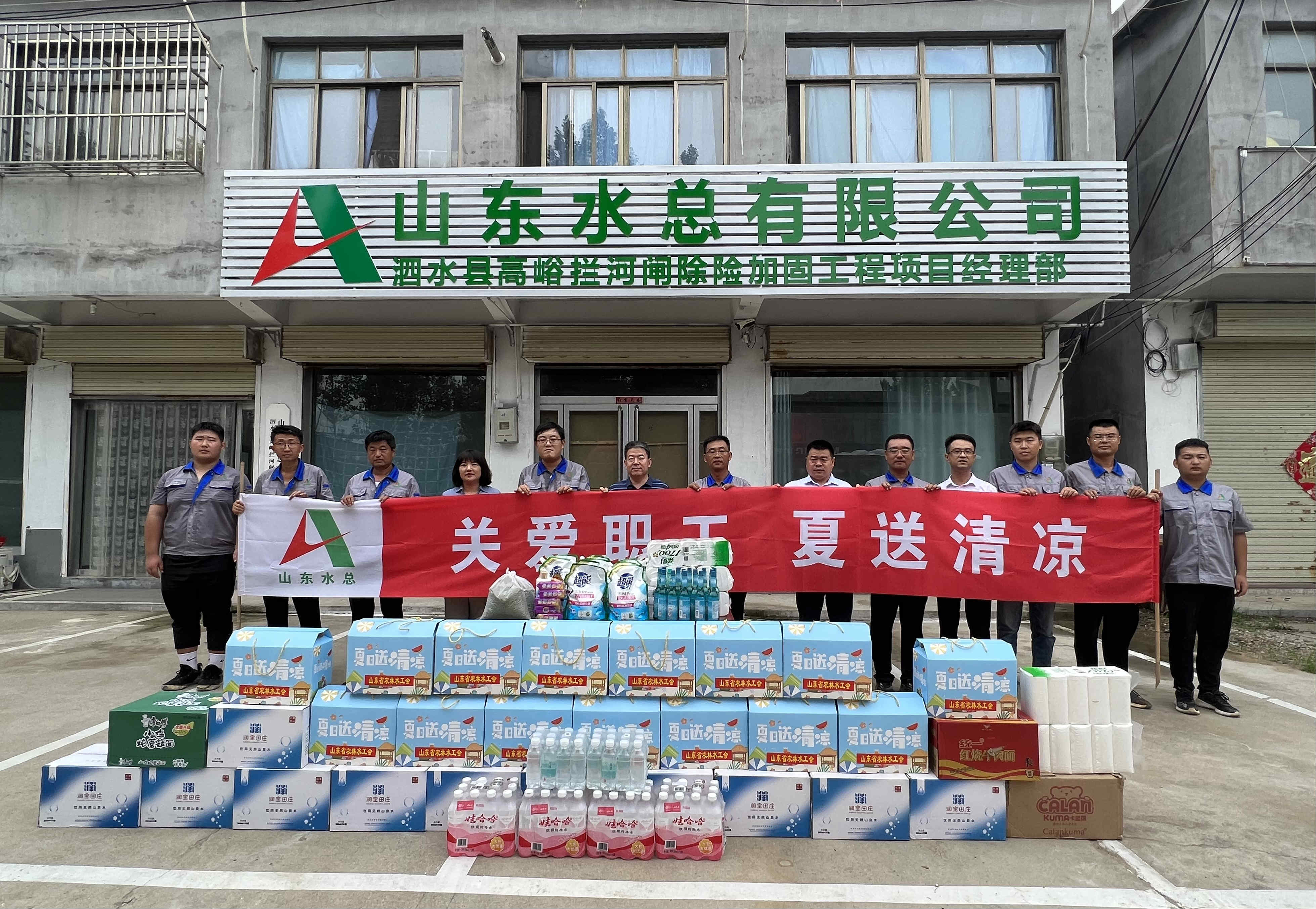 山东省农林水工会主席张志刚一行到泗水县高峪拦河闸工程开展“夏送清凉”慰问活动