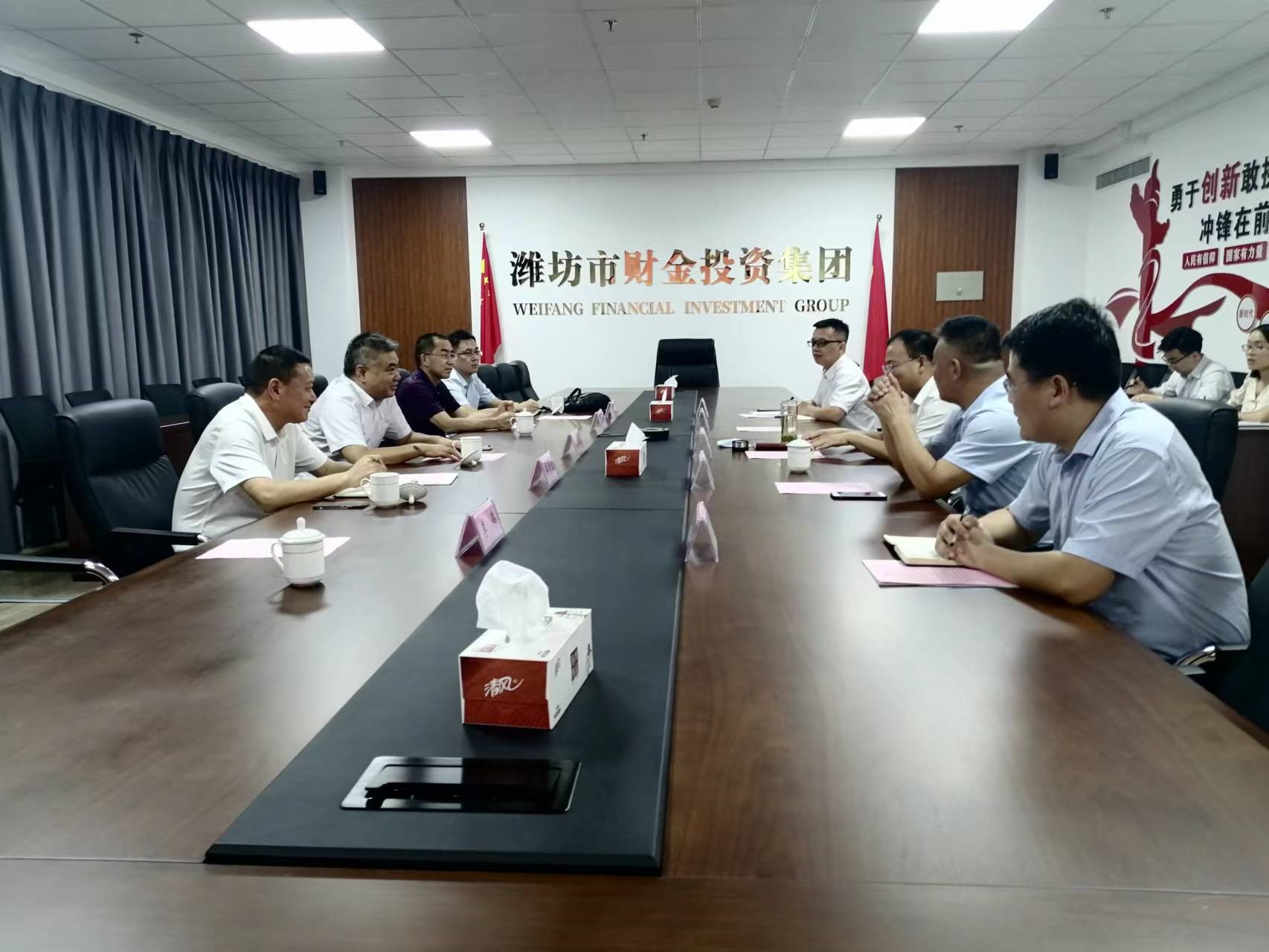 天行体育网址_天行(中国)党委书记、董事长刘深远一行到潍坊市财金投资集团开展商务洽谈