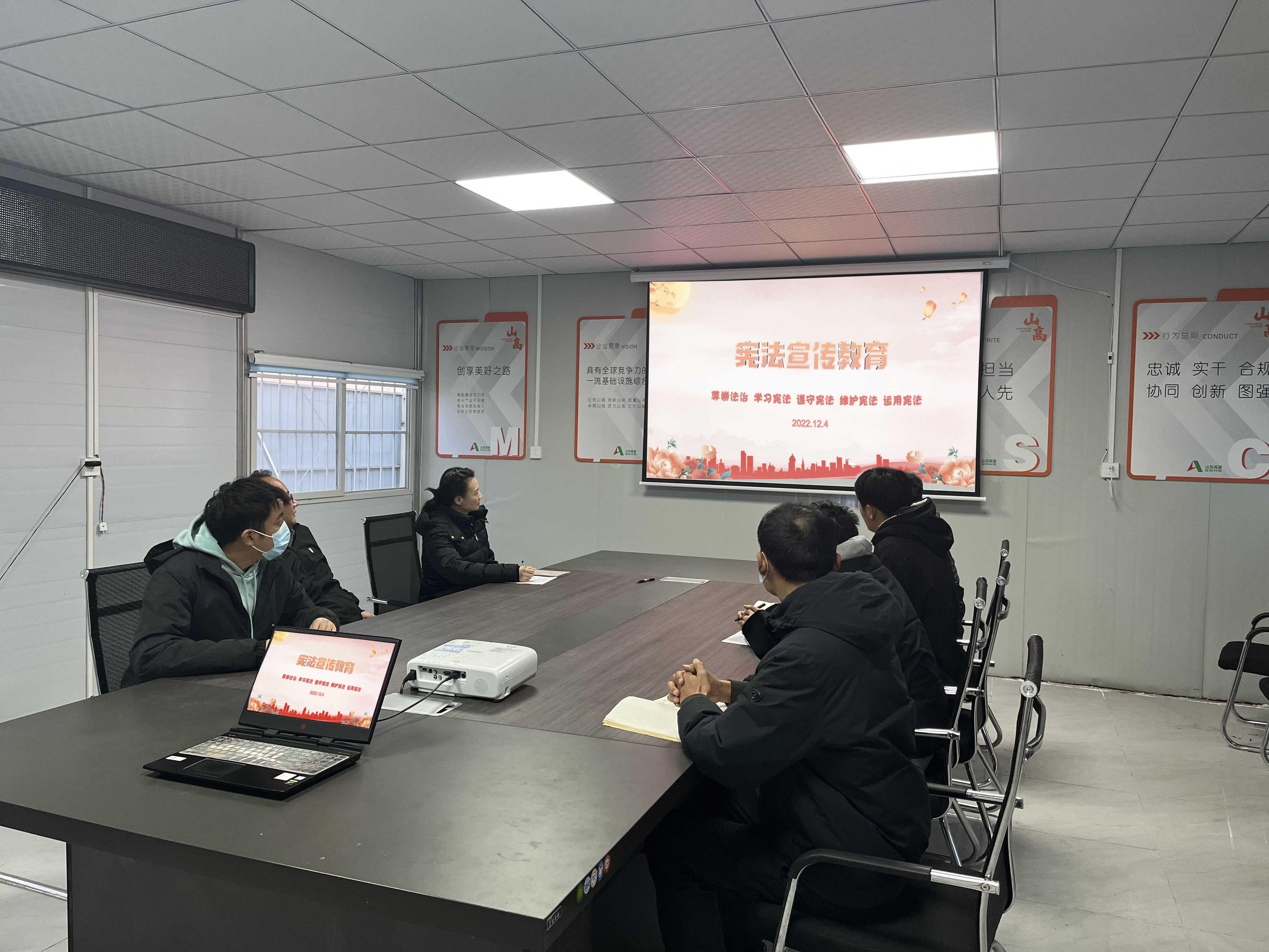 为深入学习宣传贯彻党的二十大精神,弘扬宪法精神,贯彻实施宪法,12月4日国家宪法日当天,基础有限天行体育网址_天行(中国)庆云项目部组织开展了“宪法宣传教育”主题活动。