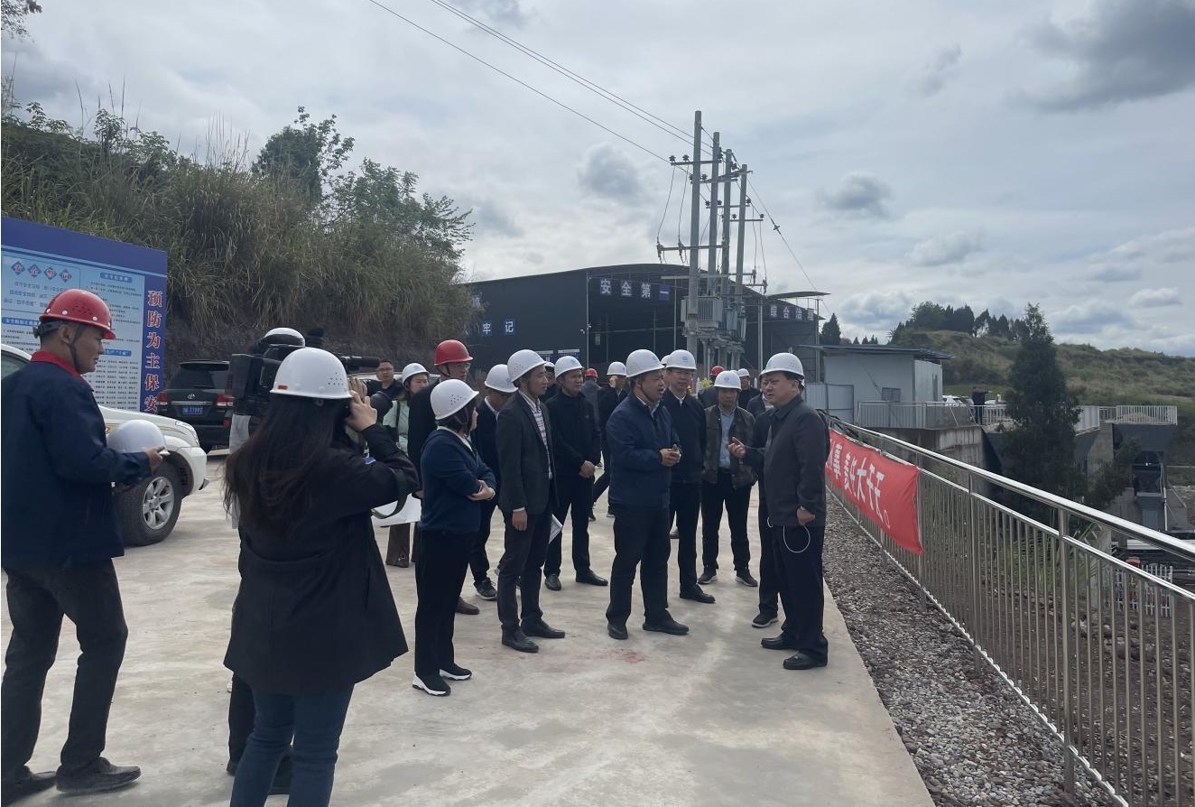 4月24日,四川省内江市市委副书记、市长李丹一行到第五分天行体育网址_天行(中国)承建的资中县两河口水库工程调研,内江市水利局党委书记、局长郭英,资中县委副书记、县长唐荣,副县长杨靖陪同调研。