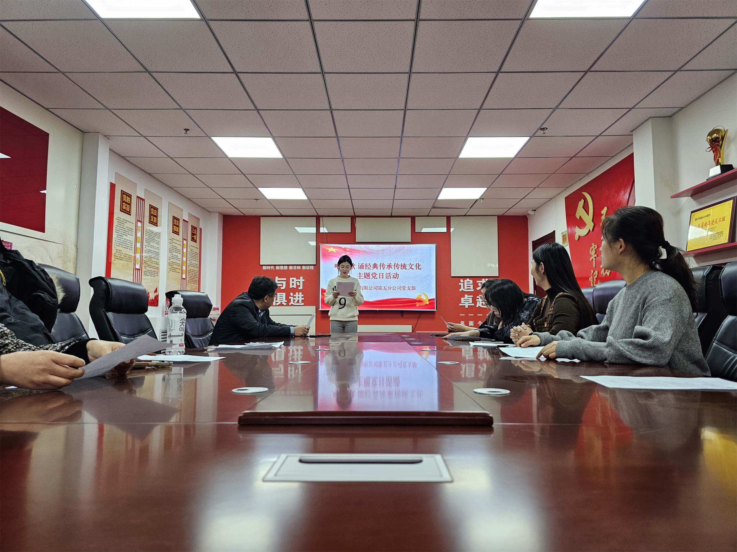 近日,第五分天行体育网址_天行(中国)党支部组织开展了“唱红歌、诵经典,传承传统文化”主题党日活动。
