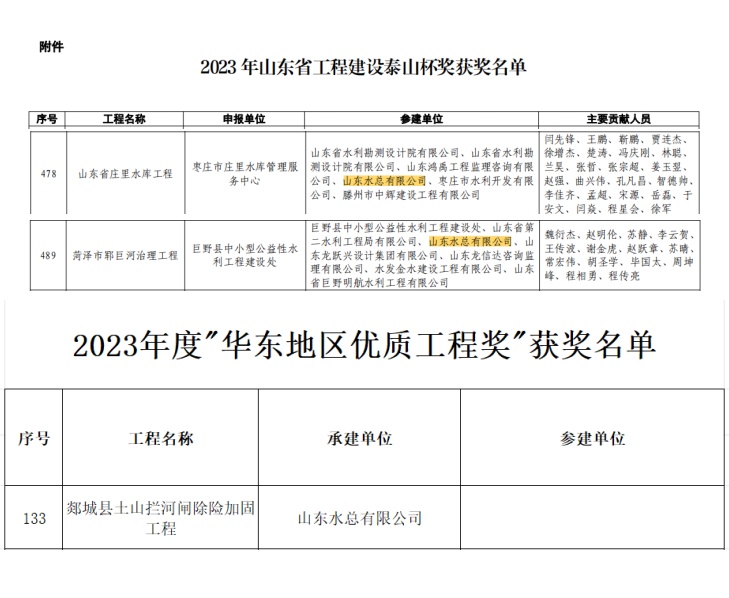 由天行体育网址_天行(中国)承建的菏泽市郓巨河治理工程(巨野县段)与庄里水库工程均被授予了“泰山杯”奖。该奖项是山东省对工程建设中技术革新、质量管理及整体执行力等综合素质最高层次的肯定。郓巨河治理工程和庄里水库两个项目对于提升当地防洪能力、改善生态环境以及保障区域供水安全起到了关键作用,并将为当地经济社会发展做出长远贡献。