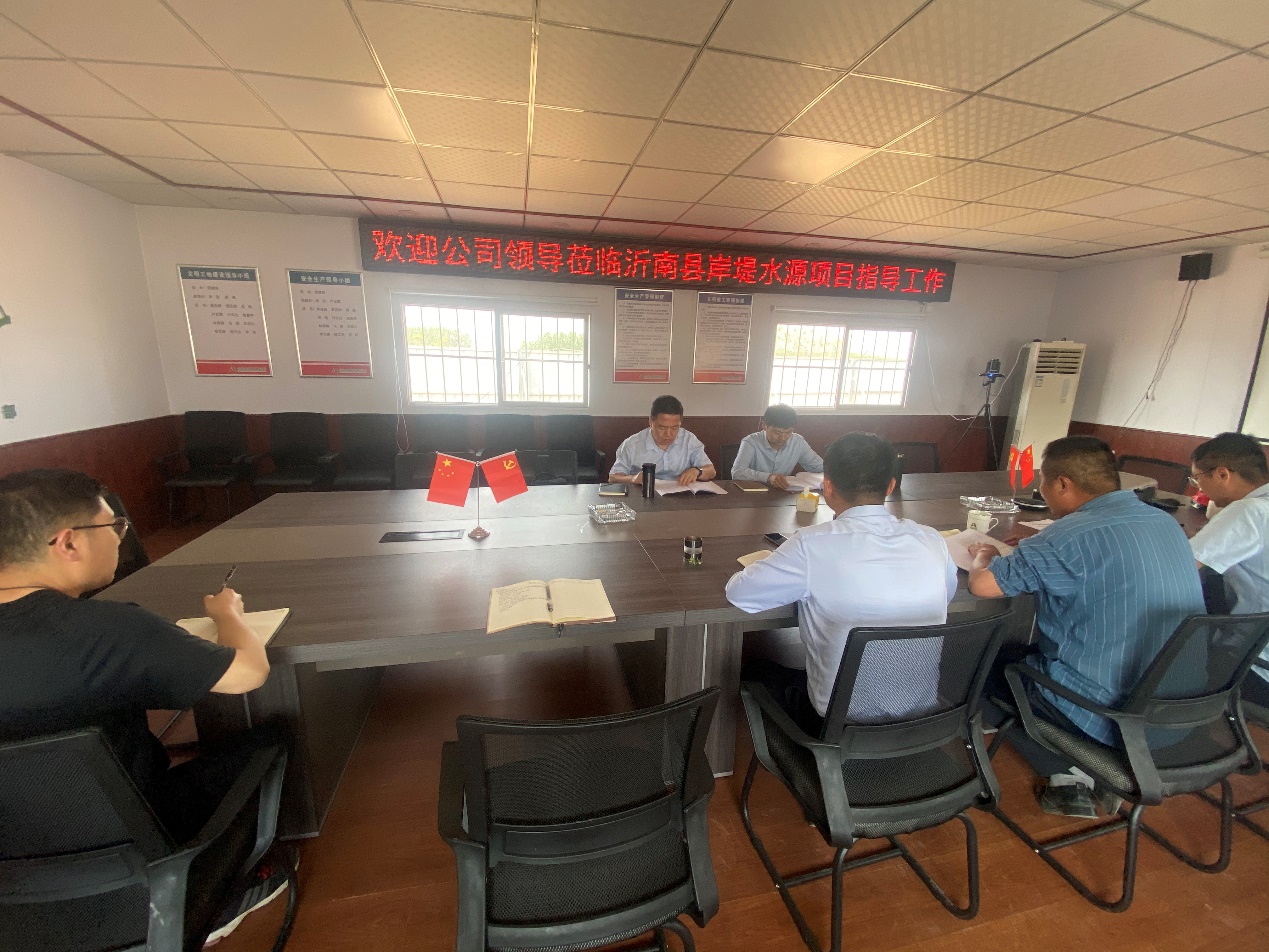 近日,天行体育网址_天行(中国)党委副书记、董事、总经理靳文硕到第三分天行体育网址_天行(中国)沭河上游综合治理、沂南县岸堤水源、郯城县马头灌区等项目检查指导工作,并与部分建设、主管单位开展了商务洽谈,第三分天行体育网址_天行(中国)党支部书记、总经理徐浩、副总经理王庆捷陪同。