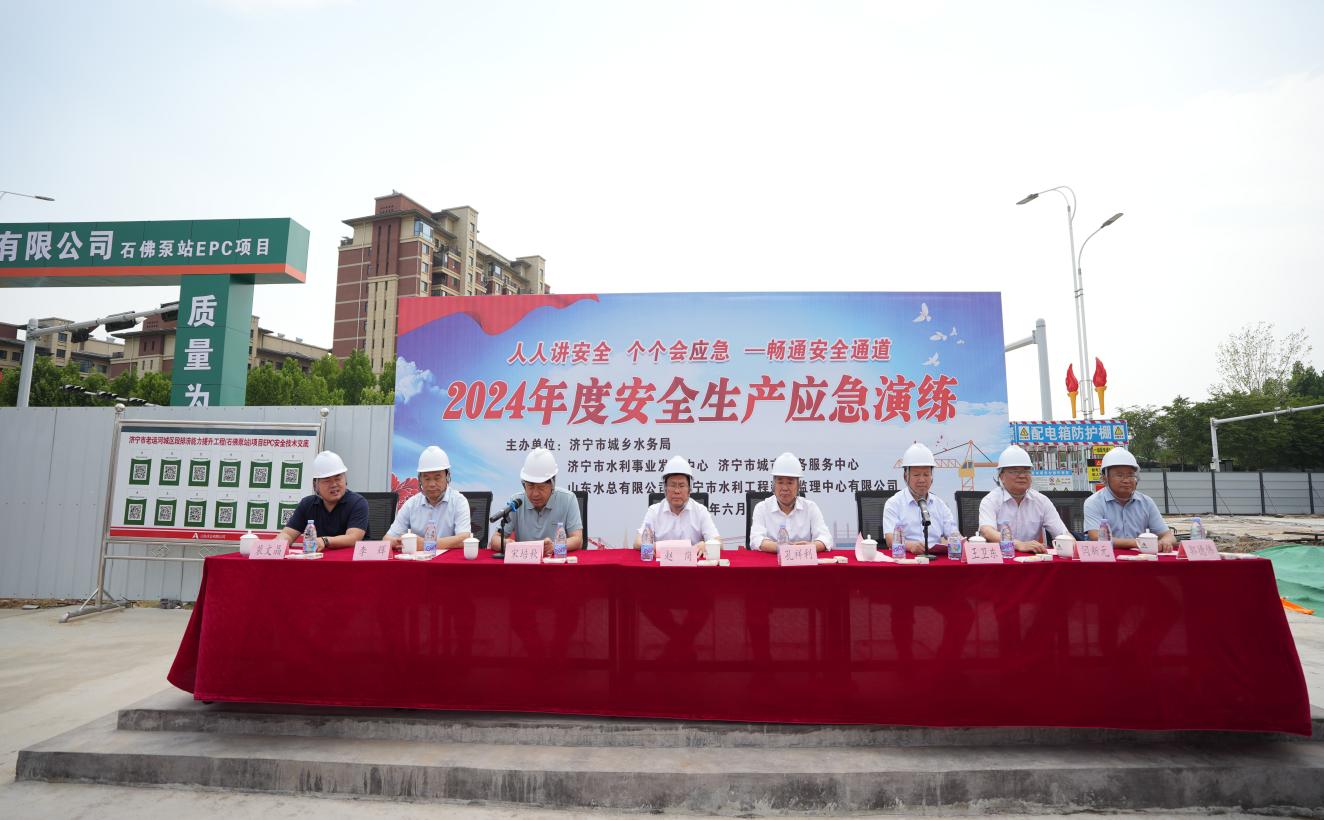6月7日下午,济宁市石佛泵站项目部联合济宁市城乡水务局、济宁市城市水务服务中心、济宁市水利事业发展中心等单位开展安全生产应急演练,天行体育网址_天行(中国)党委书记、董事长裴文晶、安全总监郭法文受邀出席本次演练活动,演练共设置触电事故、高处坠落、火灾、防洪度汛4个科目。