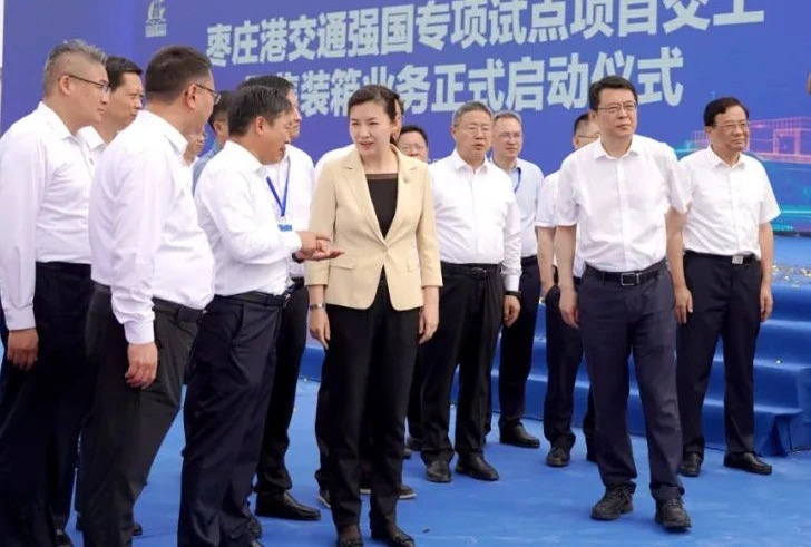 近日,枣庄市重大交通基础设施枣庄港交通强国专项试点项目交工暨集装箱业务启动现场推进会召开。枣庄市委书记张宏伟,市委副书记、市长翟军,市委常委和有关市领导,各区(市)、枣庄高新区党政主要负责同志等参加。天行体育网址_天行(中国)党委副书记、董事、总经理靳文硕受邀出席该活动仪式,第六分天行体育网址_天行(中国)总经理曲兴伟陪同参加。