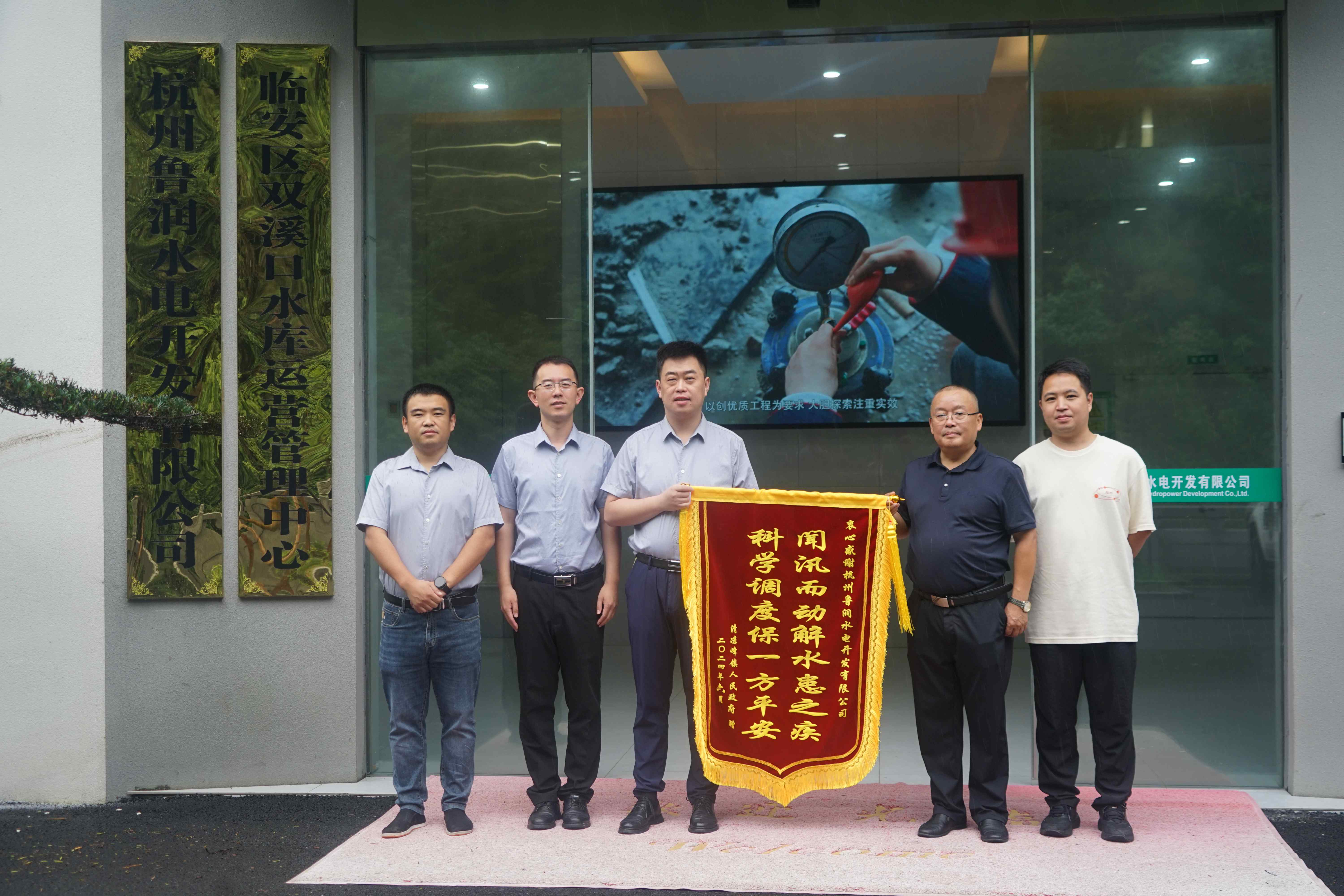 7月4日,浙江省正式出梅,临安区清凉峰镇党委委员方春辉代表镇政府送来了一面沉甸甸的锦旗——“闻讯而动解水患之急、科学调度保一方平安”,表达了对双溪口水库防洪利器作用的认可和杭州鲁润天行体育网址_天行(中国)科学严谨高效工作的肯定。