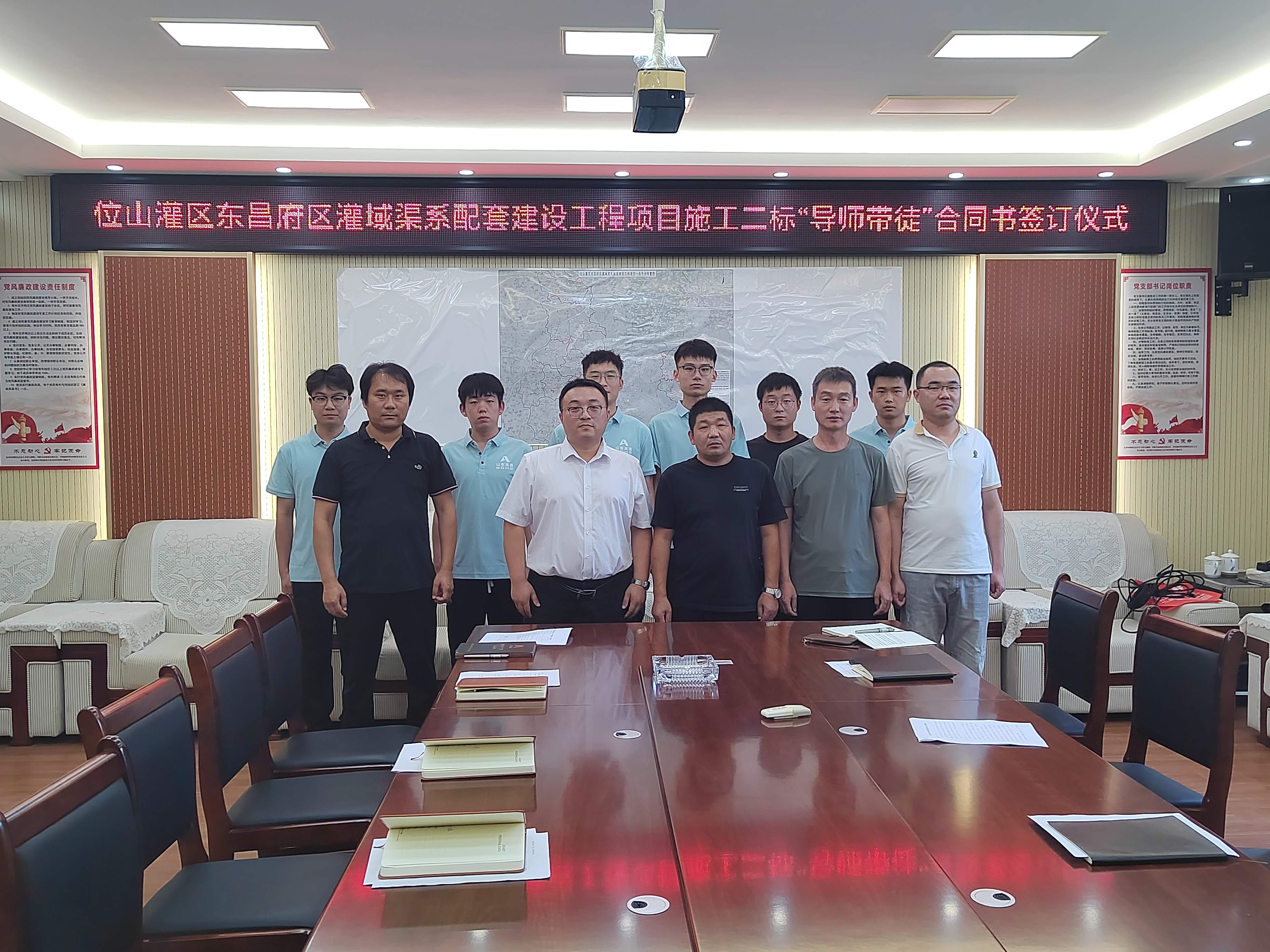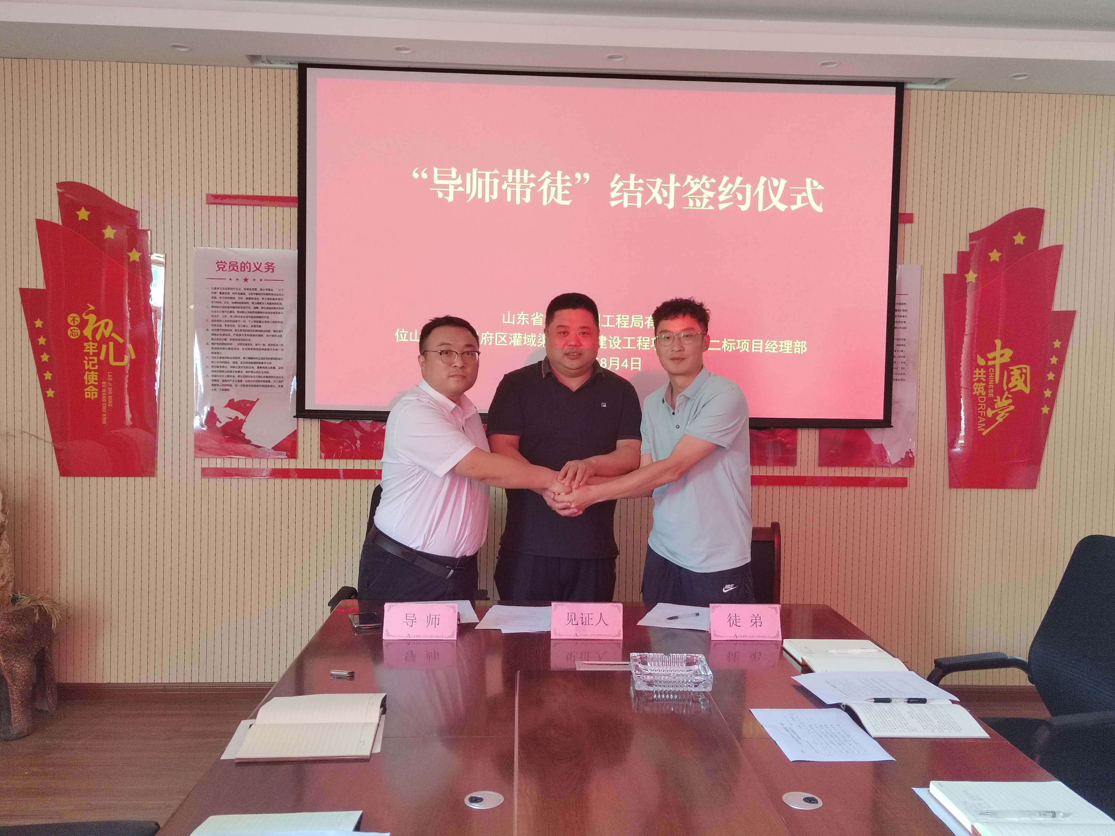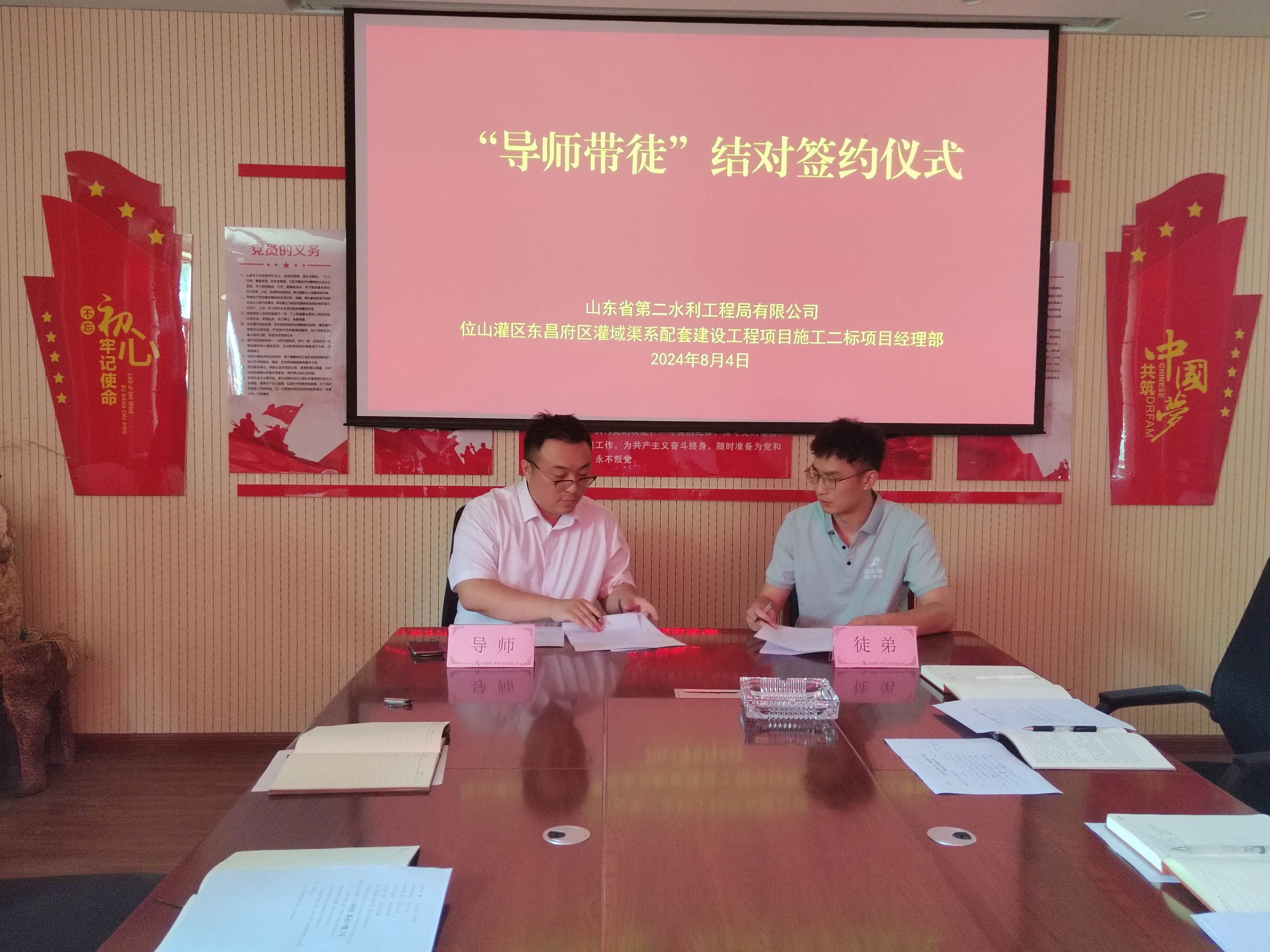 近日,二局有限天行体育网址_天行(中国)位山灌区东昌府区灌域渠系配套建设工程项目施工2标项目经理部举行了“导师带徒”结对签约仪式。