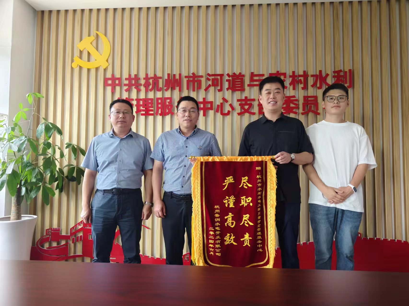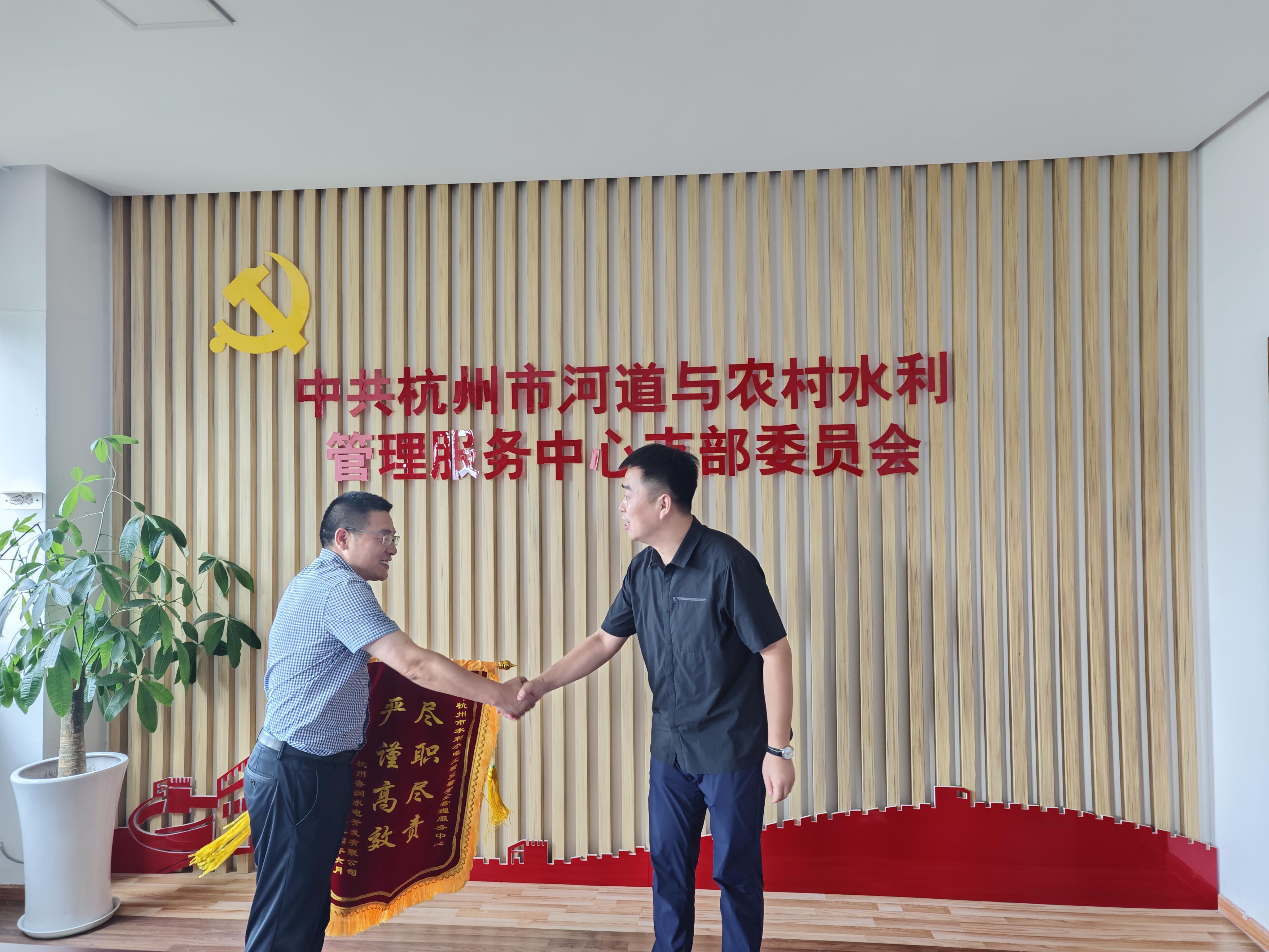 专业负责铸品质 馈赠锦旗表谢意——杭州鲁润天行体育网址_天行(中国)向杭州市水利水电工程质量安全管理服务中心赠送锦旗