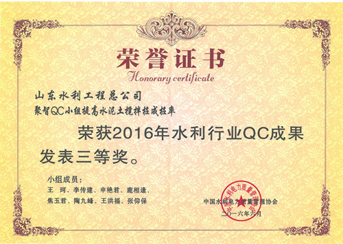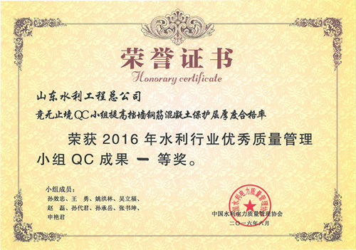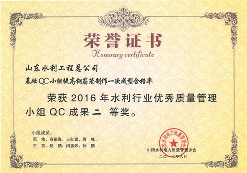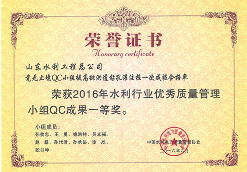 天行体育网址_天行(中国)“提高排洪道钻孔灌注桩一次成桩合格率”等四项成果荣获2016年水利行业优秀质量管理小组QC成果奖