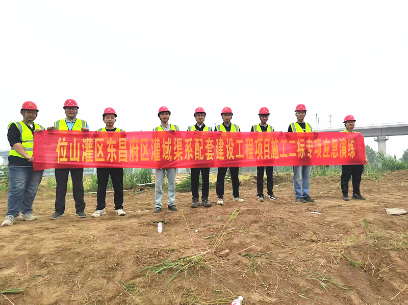 雨中演练显实效,防汛抢险展风采-二局有限天行体育网址_天行(中国)位山灌区施工二标项目部开展专项应急演练
