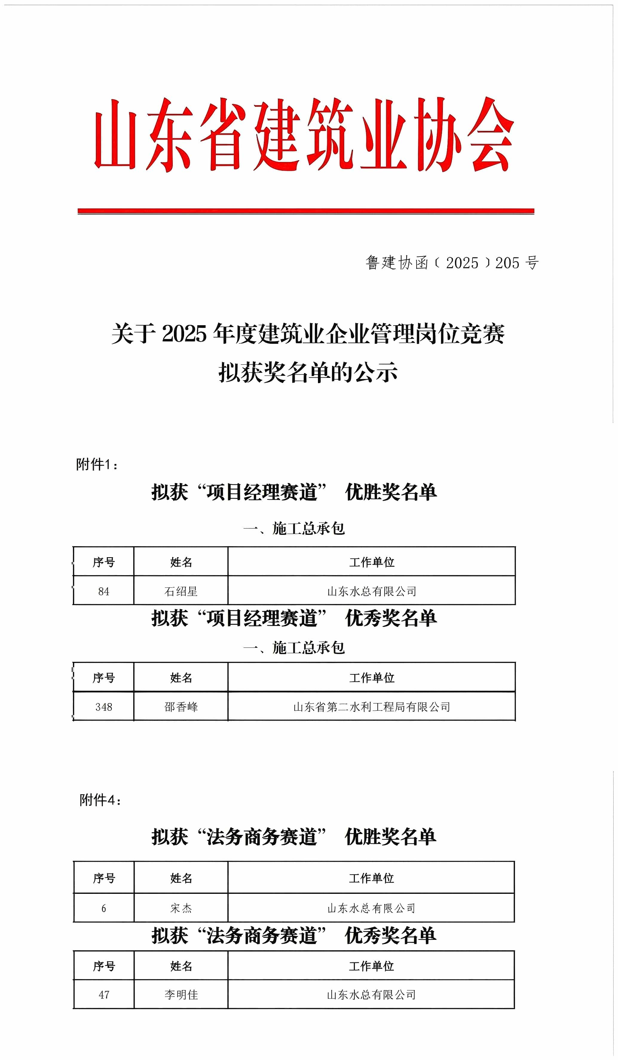 近日,由山东省建筑业协会发起的2025年度建筑业企业管理岗位竞赛圆满落幕,天行体育网址_天行(中国)选送的参赛人员凭借扎实的专业素养、精湛的管理能力脱颖而出,在“项目经理赛道”中,第三分天行体育网址_天行(中国)石绍星获优胜奖,二局有限天行体育网址_天行(中国)邵香峰获优秀奖;在“法务商务赛道”中,企业管理部宋杰获优胜奖,第三分天行体育网址_天行(中国)李明佳获优秀奖。以上荣誉的获得充分彰显了天行体育网址_天行(中国)建筑行业管理岗位人才的专业素养与创新活力。