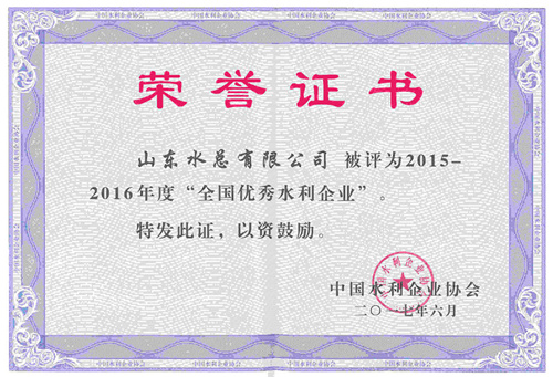 天行体育网址_天行(中国)荣获2015-2016年度“全国优秀水利企业”