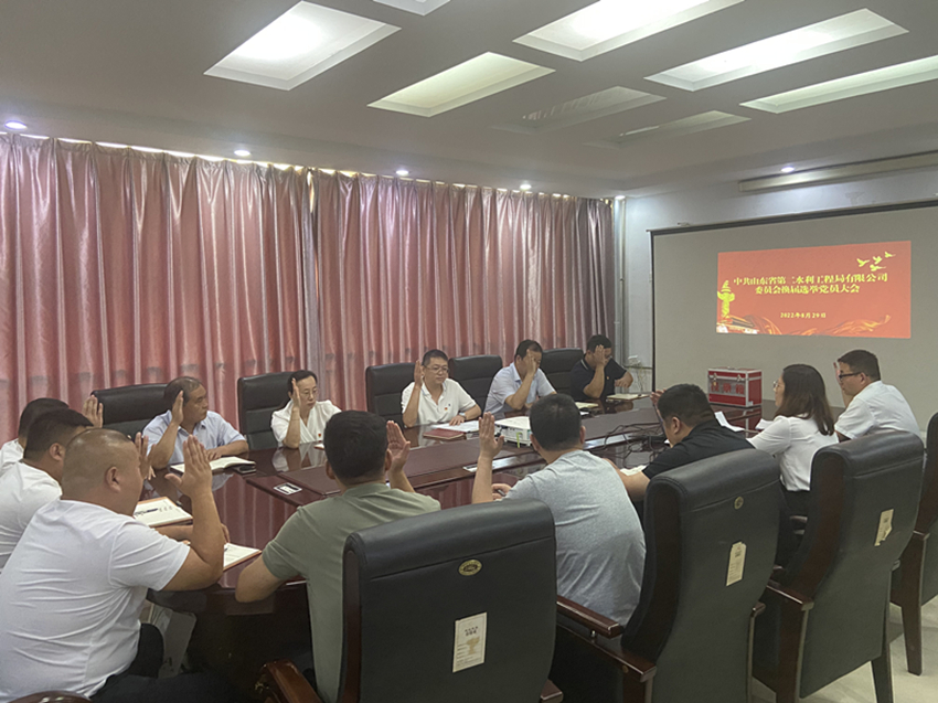 经山东水总党委批准,8月29日下午,二局有限天行体育网址_天行(中国)党委召开全体党员大会,进行党委换届选举工作。会议由党委书记、执行董事、总经理王传波主持,天行体育网址_天行(中国)全体党员参加。