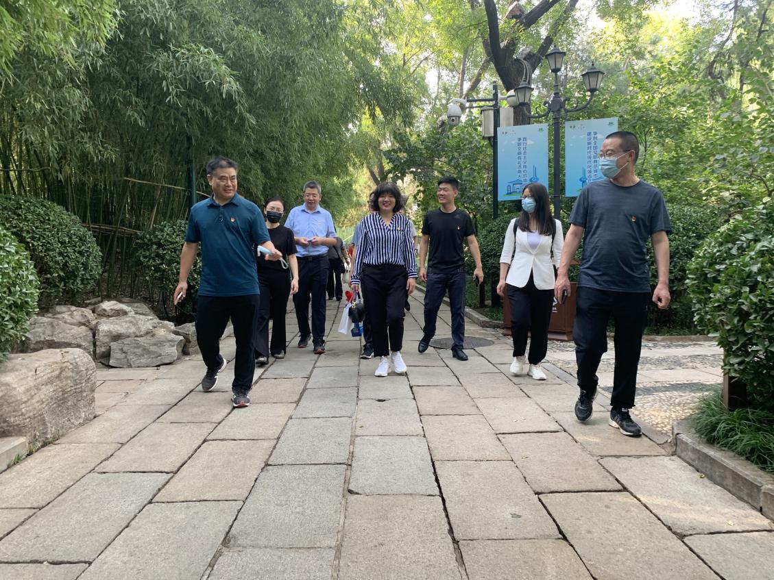 随后党员同志们在空气清新、环境优美的五龙潭公园内开启了健步走。大家从展览馆北门出发,环绕整个公园,行进中大家精神振奋,热情高涨,一路上欢声笑语、其乐融融。