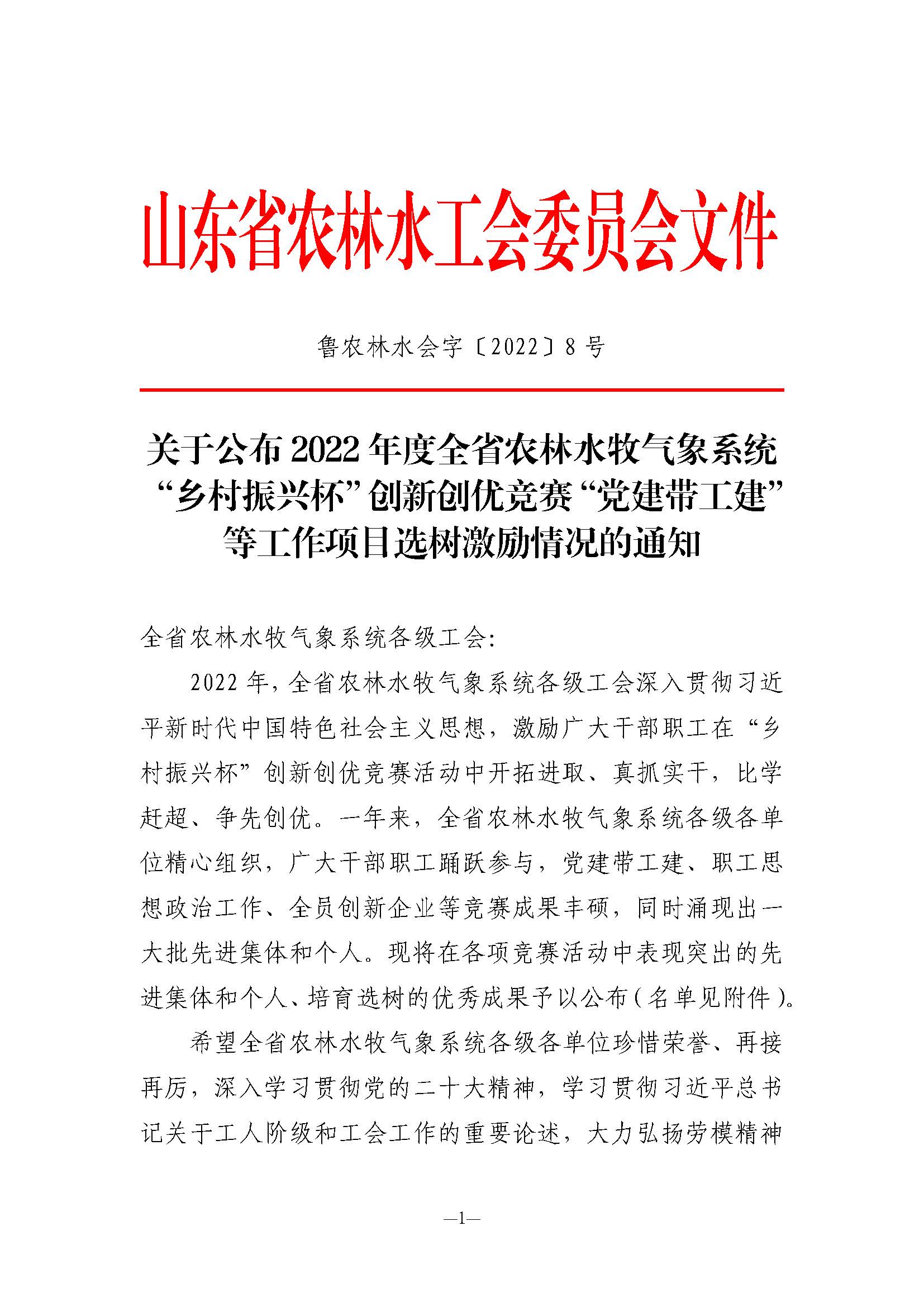 近日,山东省农林水工会委员会下发《关于公布2022年度全省农林水牧气象系统“乡村振兴杯”创新创优竞赛等工作项目选树激励情况的通知》,对涌现出的先进集体、个人和优秀案例予以通报表扬。第六分天行体育网址_天行(中国)报送的《以“党建+”系列活动为抓手 实施“党建带工建项目化”管理》和基础天行体育网址_天行(中国)报送的《党建带工建 携手共建》两个案例荣获“党建带工建、工建促党建”优秀案例;第二分天行体育网址_天行(中国)报送的《坚持以人为本 结合实际开展职工思想政治工作》荣获“职工思想政治工作”优秀案例;刘永恩同志荣获第二届“身边的爱岗敬业榜样”;苏强、谢金虎、李云贺同志荣获“职工安全隐患排查竞赛优秀个人”。
