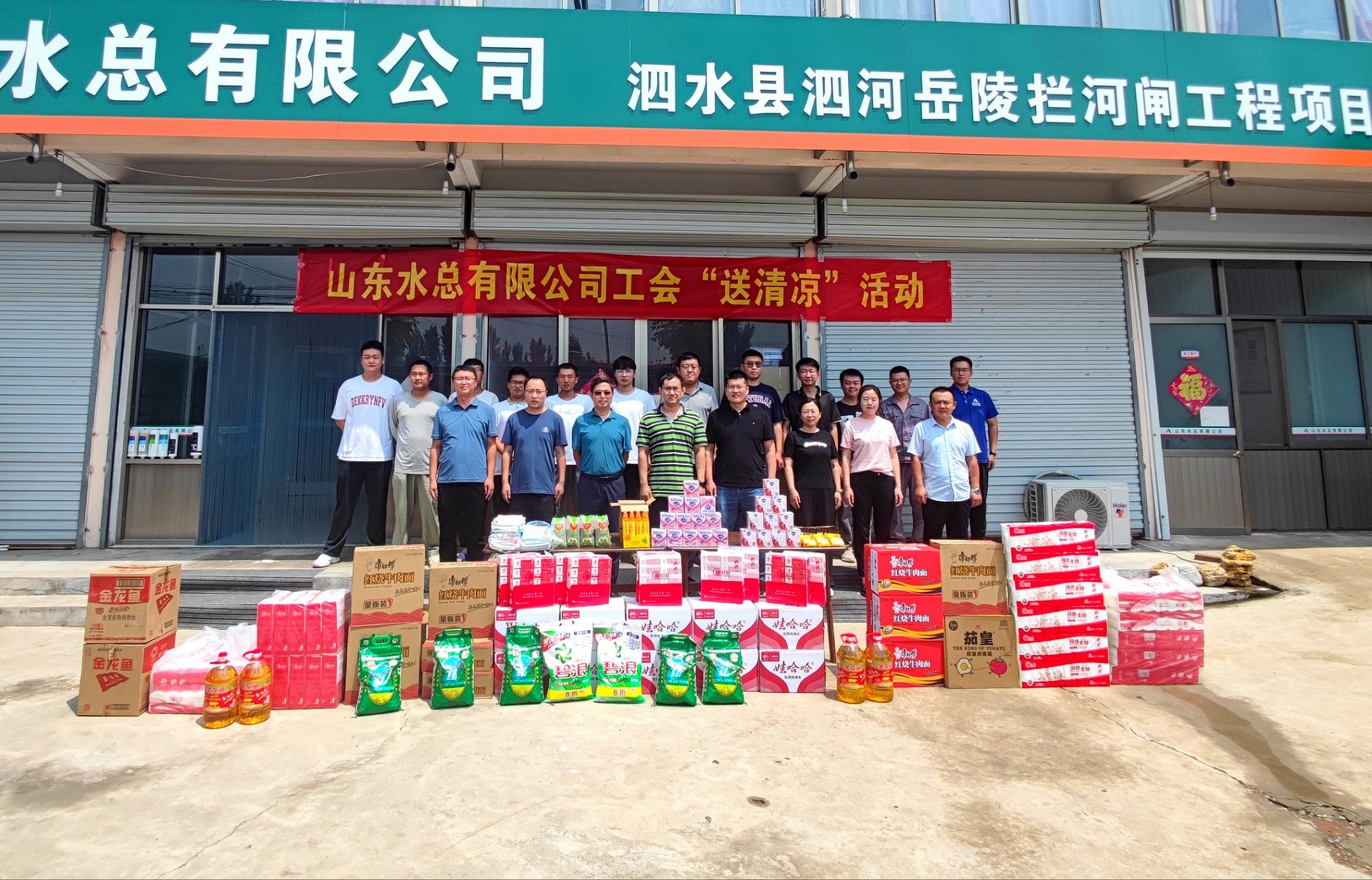 为深入学习贯彻落实习近平新时代中国特色社会主义思想,切实将天行体育网址_天行(中国)的关怀及时送到一线职工的心坎上。7月24日,天行体育网址_天行(中国)安全总监郭法文等一行人到第七分天行体育网址_天行(中国)泗水县泗河岳陵闸项目开展“送清凉”活动。