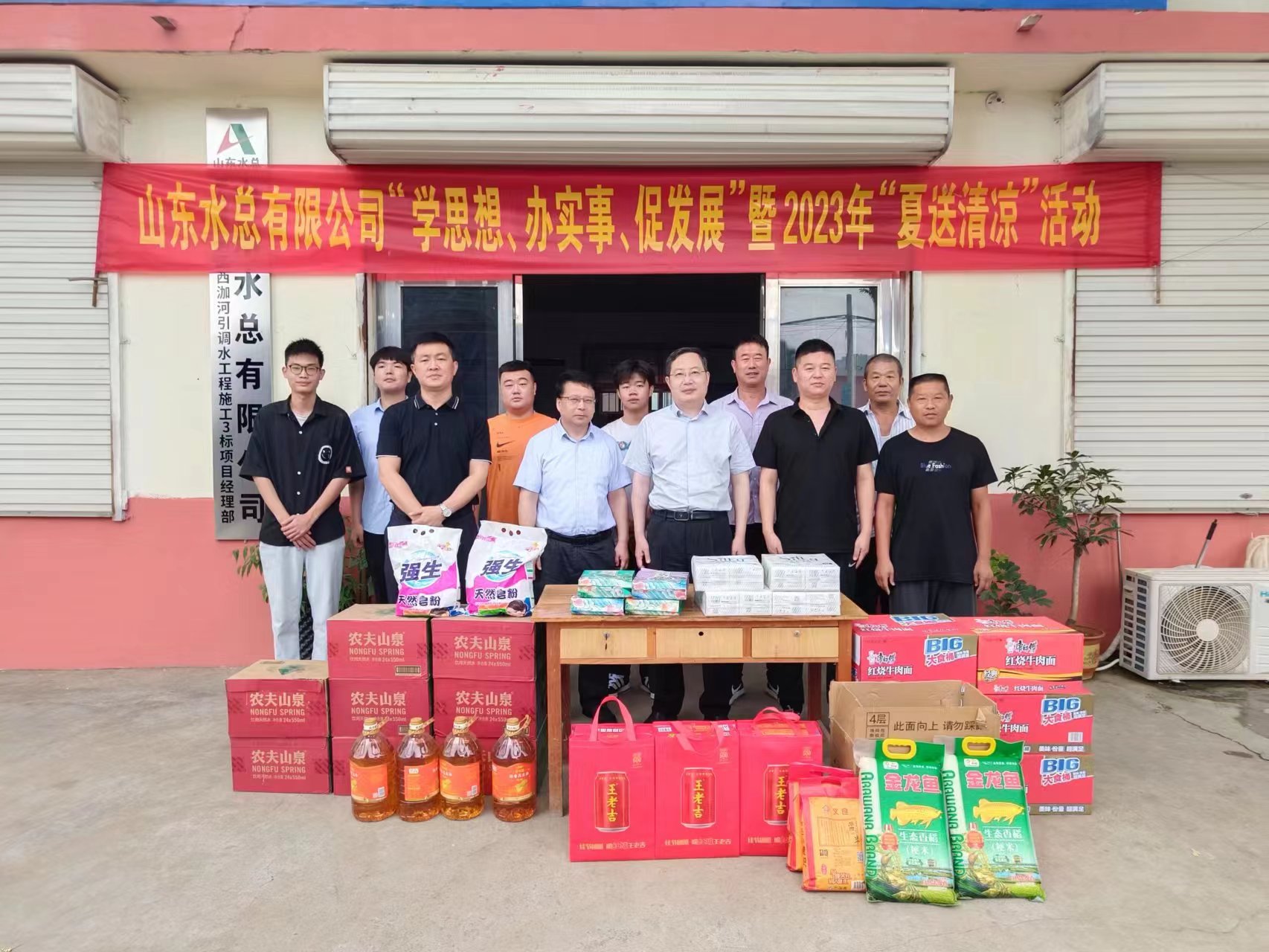 7月27日,天行体育网址_天行(中国)党委委员、副总经理杜贞义等一行人到第六分天行体育网址_天行(中国)枣庄市市中区西泇河引调水工程项目开展“学思想、办实事、促发展”暨2023年“夏送清凉”慰问活动。