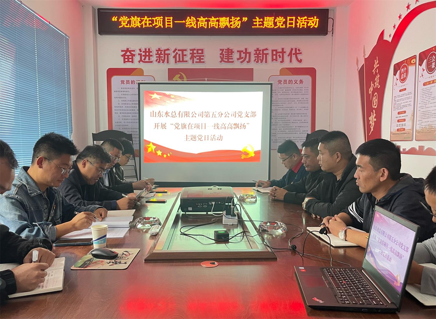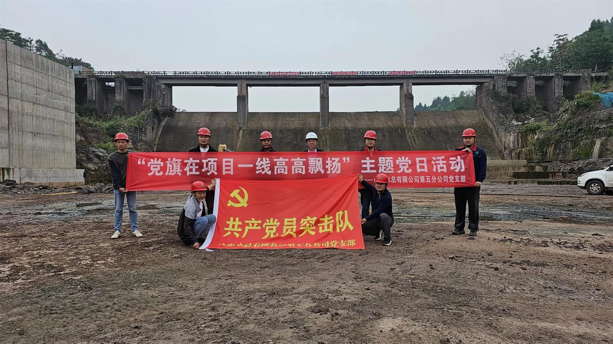 近日,第五分天行体育网址_天行(中国)党支部在资中县两河口水库项目组织开展“党旗在项目一线高高飘扬”主题党日活动。