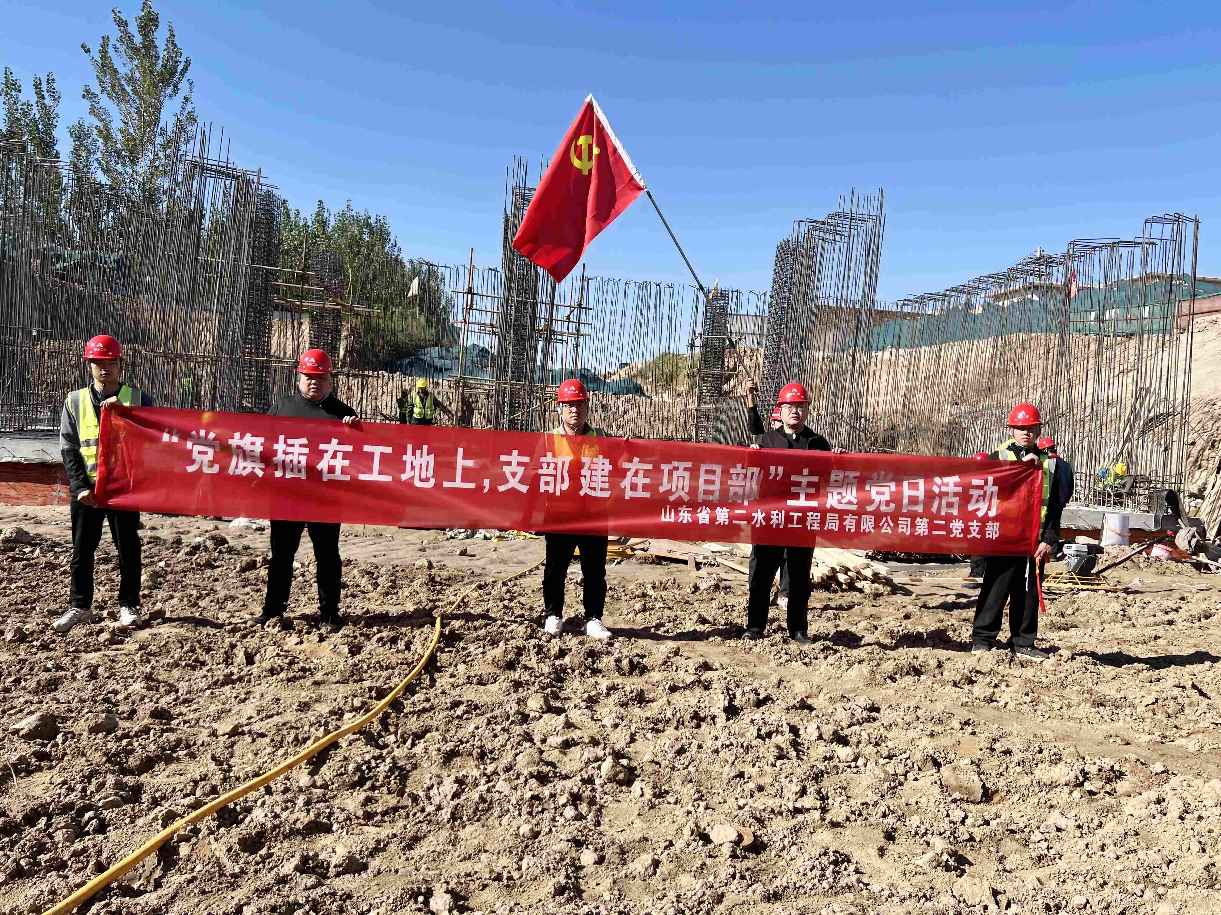 为深入开展“党建进工地”活动,推进党建与业务工作深度融合,近日,二局有限天行体育网址_天行(中国)第二党支部在聊城市位山灌区项目施工现场组织开展“党旗插在工地上,支部建在项目部”主题党日活动。