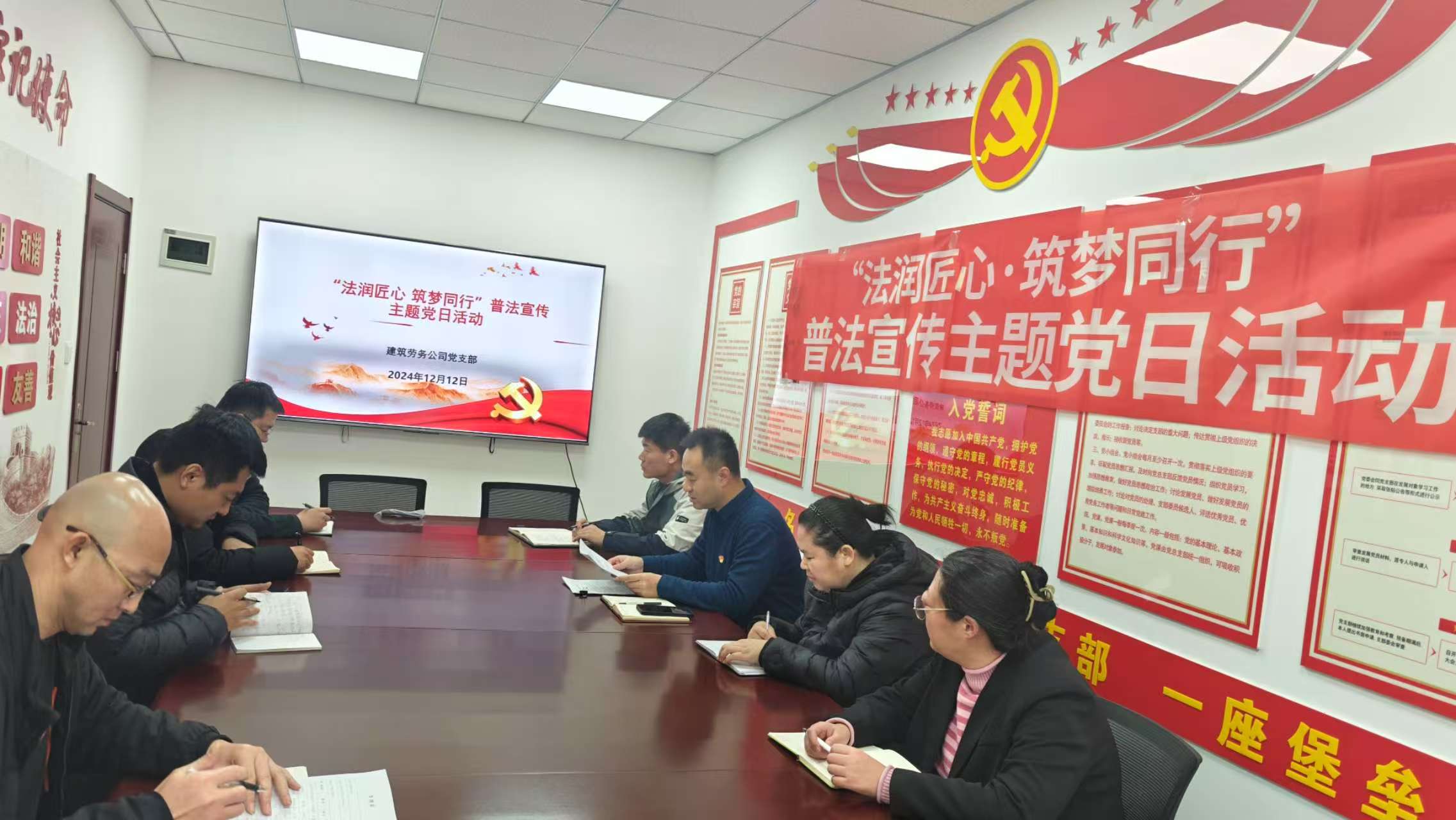 为深入学习习近平法治思想和习近平文化思想,弘扬宪法和法治精神,打造法治国企,12月12日,建筑劳务天行体育网址_天行(中国)党支部组织开展“法润匠心 筑梦同行”普法宣传主题党日活动。